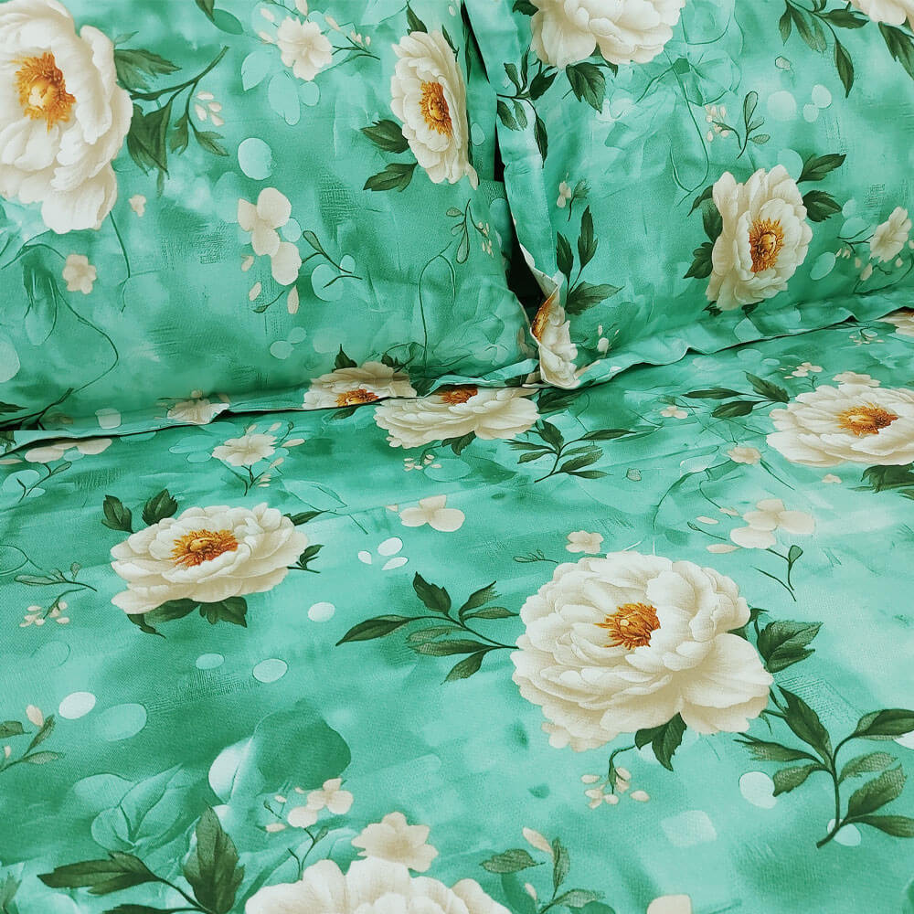 Peony Flowers Green Bed Sheet Product Details: